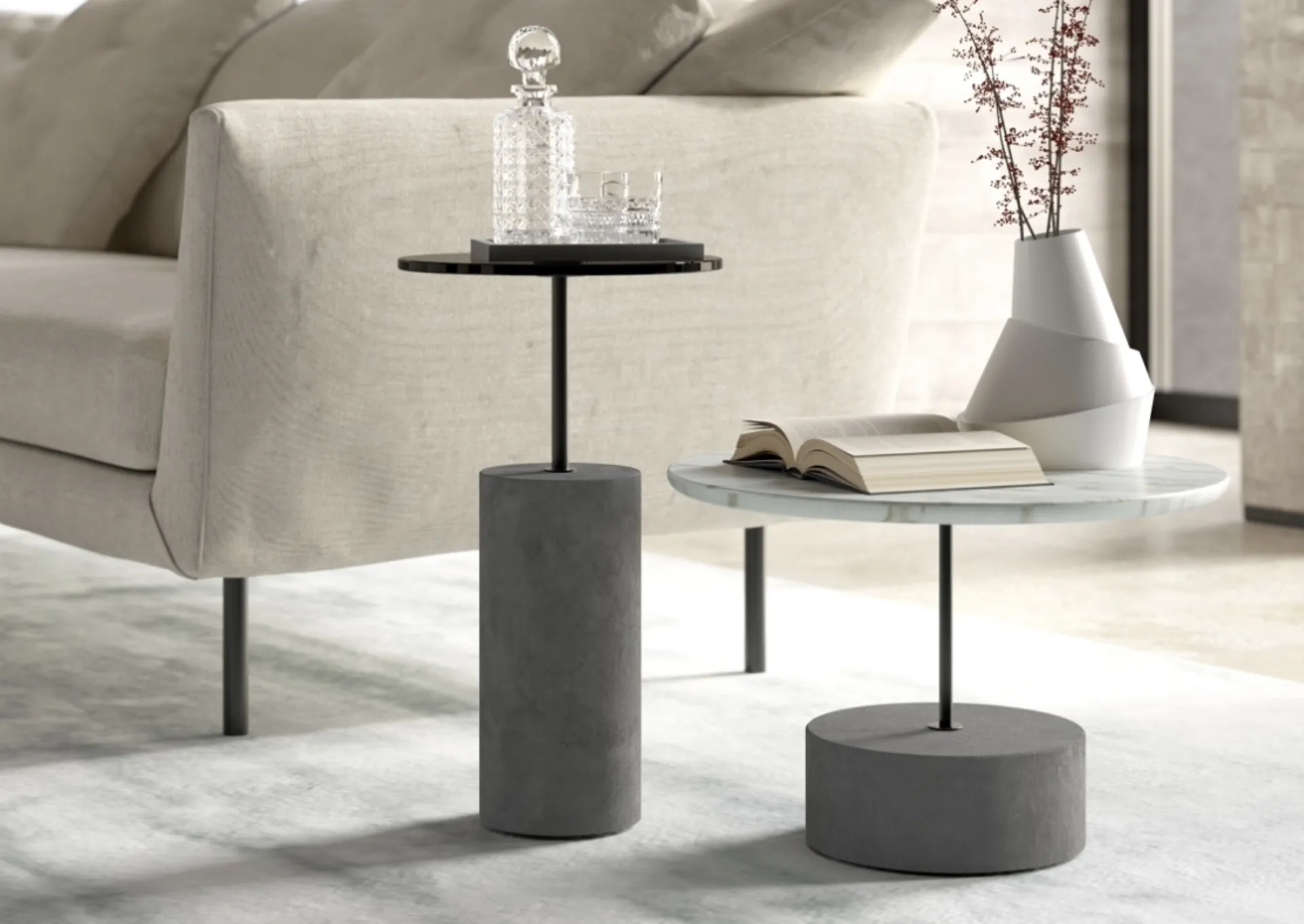 Complementi e tavolini moderni aggiungono grande valore all’arredo delle nostre case e risultano multifunzionali oltre che belli da vedere. Tavolino con top in marmo o vetro Concrete di Vibieffe in marmo: si inserisce negli ambienti domestici dai richiami moderni, unendo alla perfezione grandi doti di praticità e design. In negozio proponiamo mobili e oggetti accessori Vibieffe: la scelta praticamente infinita di bellissimi Complementi della firma ti attende. Come abbinare i Complementi all’arredamento? Con svariate proposte di Vibieffe avrai a disposizione cromie e finiture per liberare la tua creatività arredativa. I nostri architetti ti consiglieranno nella scelta di un buon modello di tavolini, in modo che possa ultimare le doti di funzionalità e l'estetica dell'ambiente.