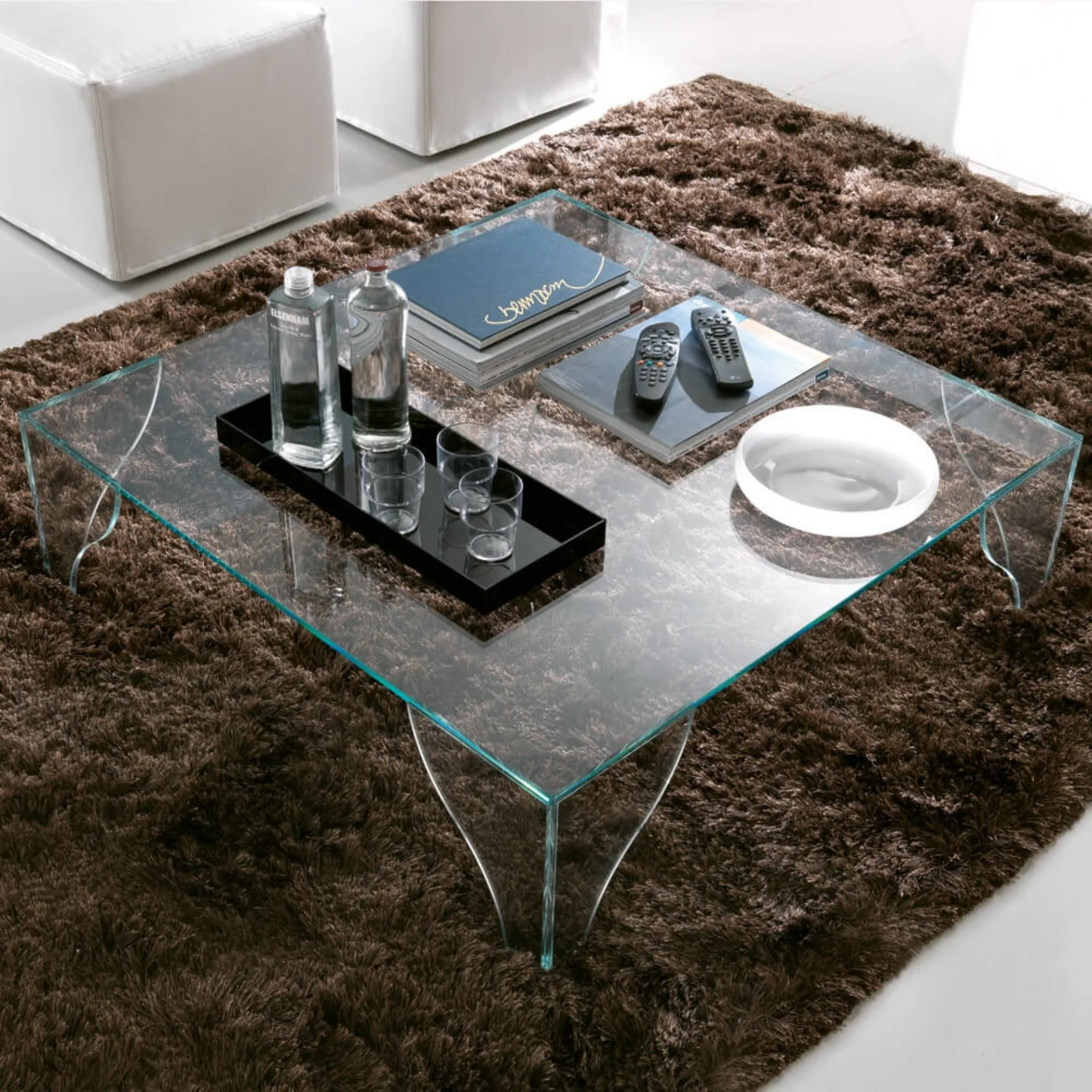 Particolarmente versatili e plurifunzionali, i Complementi moderni in vetro svolgono funzioni diverse: ultimano le doti di funzionalità e l'estetica dell'ambiente. Complementi e tavolini personalizzano l'arredo di casa, occupando lo spazio in maniera utile e rendendolo assai funzionale e bello a vedersi. Tavolino in cristallo Sipario di Ponti Terenghi in vetro: conferirà carattere e charme a un locale ammobiliato con mobili e complementi dai richiami moderni. Le composizioni arredative di charme del marchio Ponti Terenghi valorizzano gli interni con colore e stile, ricreando particolari atmosfere arredative. Nel nostro showroom potrai vedere dal vivo la qualità dei modelli di tavolini moderni in vetro della firma, proprio come questa soluzione in foto.