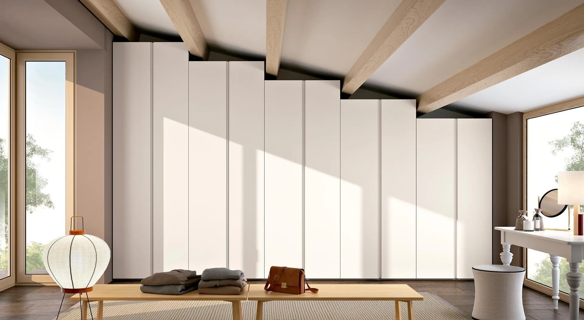 Nella nostra collezione di Armadi per mansarde design con ante battenti troverai anche il modello visibile in foto, perfetto per chi cerca funzionalità e stile. Questa soluzione, tra i differenti modelli per mansarde con ante battenti di Ferrimobili, è simbolo di resistenza, eleganza e raffinatezza duraturi negli anni. Per ultimare il progetto d'arredo in una camera pratica e sofisticata, abbiamo scelto per te le più belle e interessanti soluzioni Ferrimobili, diverse per classe, grandezza, finitura e elementi accessori. Contattaci e ottieni informazioni su un ricco catalogo di Arredamento Casa per ammobiliare la camera da letto avendo a disposizione mobili contenitori in melaminico di grande design. Armadio su misura per mansarde con travi Composizione 24 di Ferrimobili: compila il form per informazioni e preventivi e progetta la tua casa come l'hai sempre sognata.