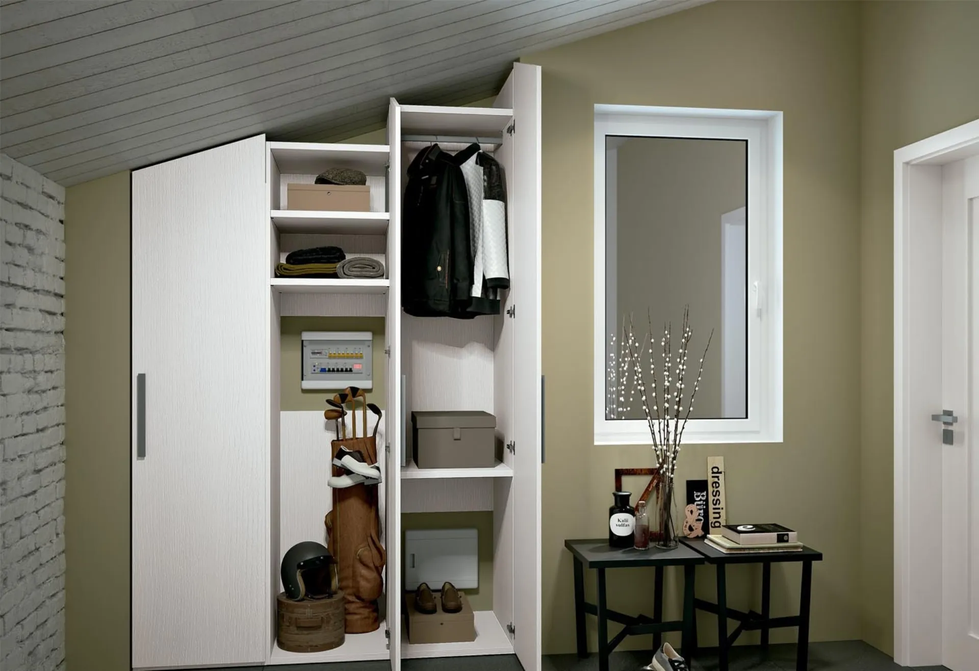 Armadio ripostiglio Composizione 33 di Ferrimobili in melaminico: in una ricca gamma di mobili ed elementi accessori, questo modello ti farà ultimare la tua zona del riposo come l'avevi immaginata. Affidabilità e comfort sono gli aspetti che, unitamente a una buona resa estetica, distinguono tutti gli Armadi per mansarde moderni dell'azienda Ferrimobili. Se desideri creare una stanza bella e di grande qualità, compila il form o vieni a trovarci per ottenere infromazioni, consigli e idee nell'ambito dell'Arredamento Casa. Una ricca gamma di arredi in melaminico come quest'armadiatura con ante battenti in foto. Farci visita vuol dire vedere dal vivo le offerte del noto e rinomato brand, sempre di grande design. Armadio ripostiglio Composizione 33 di Ferrimobili: se sei alla ricerca di arredatori professionisti per preventivi e progetti, realizza con noi la casa che hai sempre sognato.