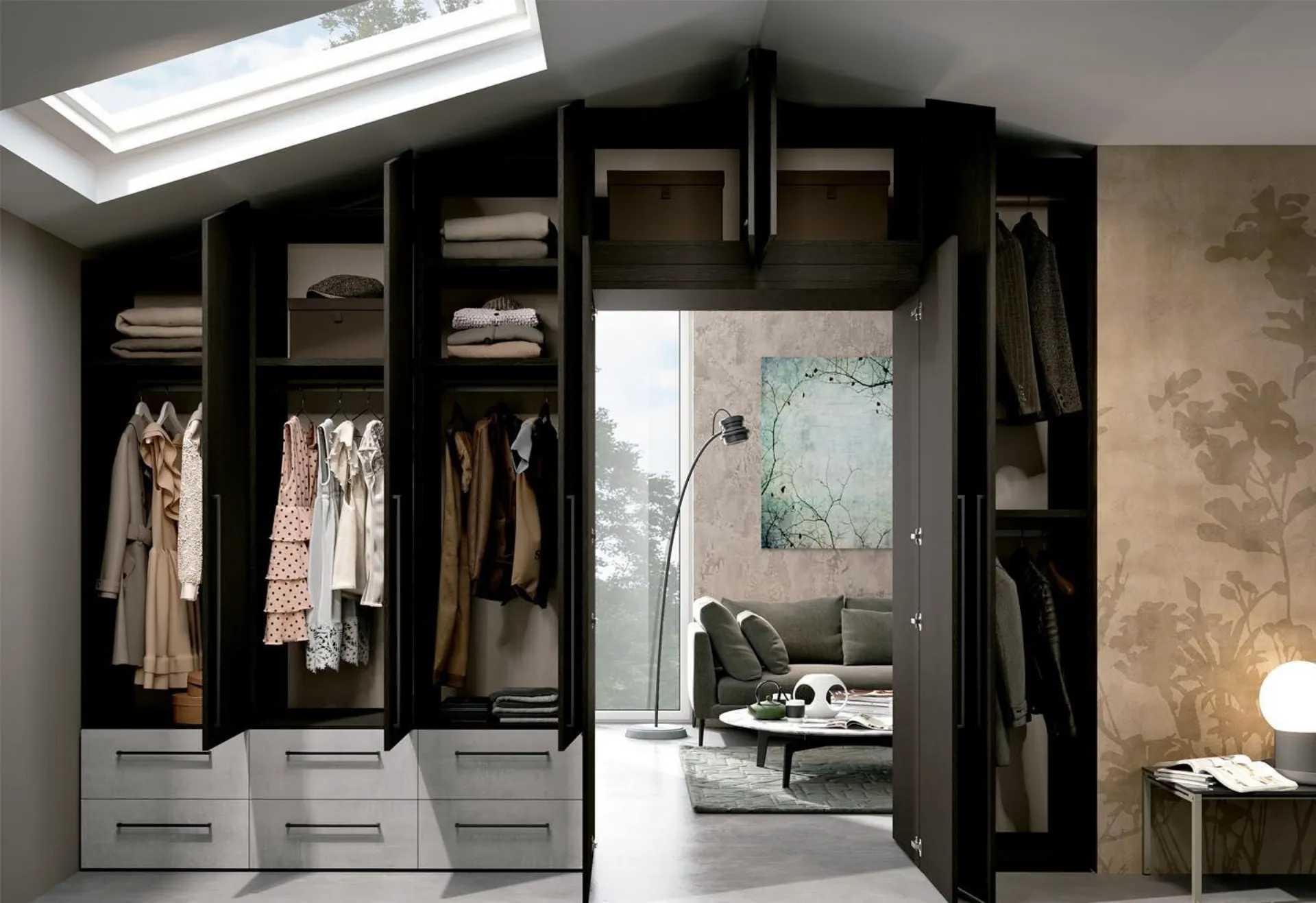 Per ultimare alla perfezione il progetto d'arredo, scegli le nostre proposte di Arredamento Casa dei migliori produttori, letti, armadi e comò differenti per stile, dimensione e finitura. Gli Armadi e le cabine armadio con ante battenti devono arredare la camera da letto garantendoti una perfetta organizzazione degli spazi e un'esclusiva ricerca stilistica. Contattaci per info e preventivi e potrai ultimare la zona del riposo che hai sempre desiderato grazie ad una diversificata gamma di contenitori design come questo guardaroba in melaminico nella fotografia. La zona del riposo è dedicata al relax, deve dunque risultare arredata con gusto e completa di mobili e complementi capaci di ricreare un'atmosfera sempre distensiva. Armadio Mansardato composizione 08 di Ferrimobili: compila il form, contattaci e dai vita alla stanza del relax come l'hai sempre immaginata.