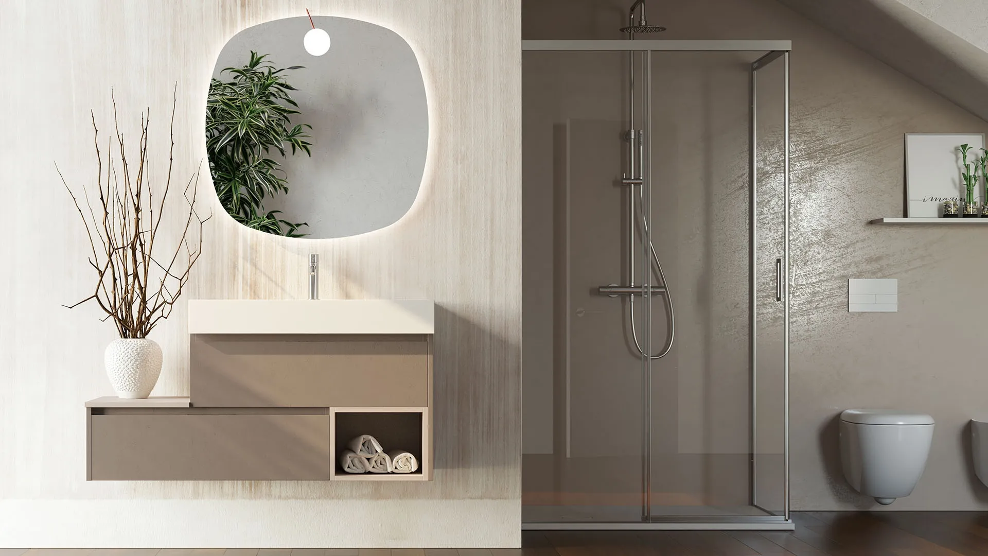 Per merito della ricca serie di soluzioni di Arredo Bagno moderno con mobili bagno sospesi di Arteba, ogni spazio diviene esteticamente apprezzabile e confortevole. Il modello Mobile da Bagno Newsmart NS21 di Arteba in melaminico qui proposto impreziosisce il locale nel segno di originalità e design, con grande eleganza. Facci visita per scoprire questo e i restanti modelli di grande qualità della marca che proponiamo, ti garantiremo la completa contentezza a progetto terminato. Il noto e conosciuto brand presenta arredi per il bagno di ogni tipo, così da rendere l’arredo dell'ambiente veramente personalizzabile, agibile e versatile. Al giorno d'oggi il bagno non è più unicamente un locale di servizio, anzi al suo arredo viene riservata la stessa cura dei restanti ambienti domestici. Ricca offerta di linee e cromie per le proposte di Arredo Bagno moderno con mobili bagno sospesi di Arteba, soluzioni sempre votate alla massima progettualità.