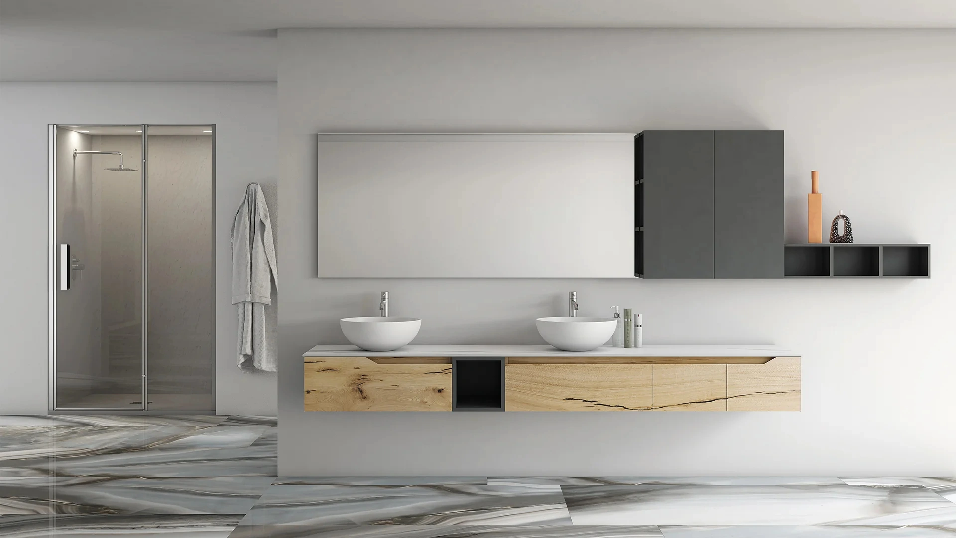 Il bagno è il luogo deputato al benessere e alle pratiche di cura personale, quindi va arredato unendo doti di funzionalità e stile. Le cromie, i materiali e glimoduli che il brand rende disponibili per l’Arredo Bagno moderno con mobili bagno sospesi offrono l'opportunità di progettare differenti contesti. Con una vasta scelta di composizioni arredative della firma Arteba potrai progettare il bagno nei minimi particolari, risolvendo le tue problematiche abitative. Ogni progetto realizzato con i prodotti della firma è caratterizzabile con mobili bagno sospesi di ogni genere, sempre in materiali di prima scelta e che resistano. Qui ti presentiamo il modello di Mobile da Bagno sospeso Rustech RT23 di Arteba in legno che impreziosisce alla perfezione lo spazio assicurando la funzionalità.