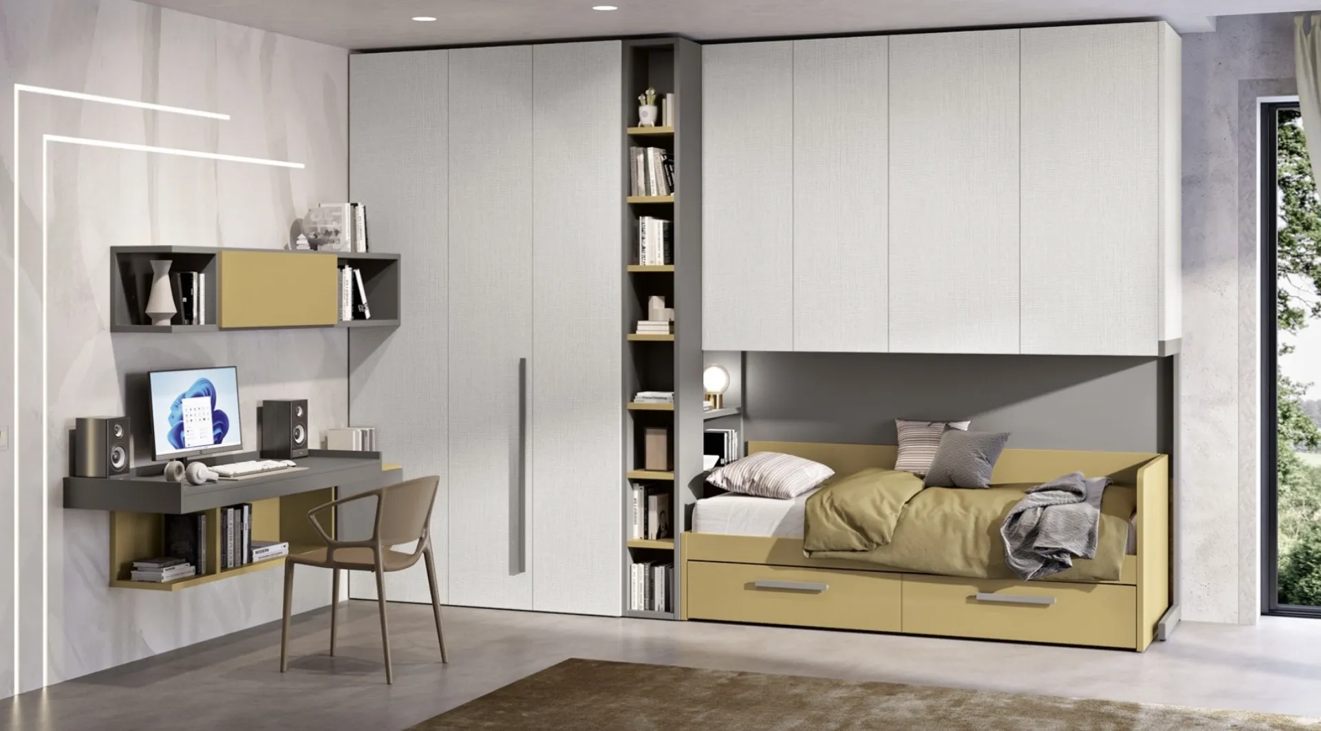 Le Camerette a ponte per ragazzi del rinomato brand sono disponibili in molteplici versioni, che rispondono sempre alle esigenze dei bambini. Scopri nel nostro punto vendita la Cameretta 119 di Ferrimobili in melaminico: è ideale per creare perfettamente un ambiente confortevole, bello e ben organizzato. Materiali di prima scelta e vernici ecologiche connotano le proposte del brand, tra cui troverai anche quelle moderne a ponte ideali per te. Se la stanza ha dimensioni non generose, sono differenti le soluzioni che Ferrimobili presenta, sempre in grado di coniugare funzionalità ed ergonomia. Gli accessori disponibili per le Camerette a ponte di Ferrimobili sono sempre personalizzabili, per scongiurare qualunque problema di spazio e funzionalità.