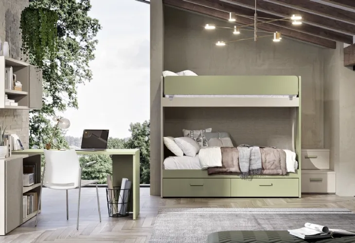 Se cerchi spunti creativi per decorare al meglio la stanza dei tuoi figli, ti presentiamo la Cameretta126 di Ferrimobili con finitura in melaminico. Ferrimobili propone un ricco catalogo di accessori da comporre su misura: troverai letto, armadio o cabina armadio, scrivania, sedie e librerie. Porta design e cromie vivaci nella stanza dedicata ai più giovani con questa soluzione, una tra le Camerette con letti a castello per ragazzi di Ferrimobili. Nella progettazione della stanza dei piccoli affidati a noi: nel nostro showroom presentiamo tutte le più esclusive composizioni moderne per la loro camera. Questa proposta in melaminico ultima al meglio le doti di praticità e il valore estetico della camaretta, in quanto è capace di congiungere funzionalità ed ergonomia.