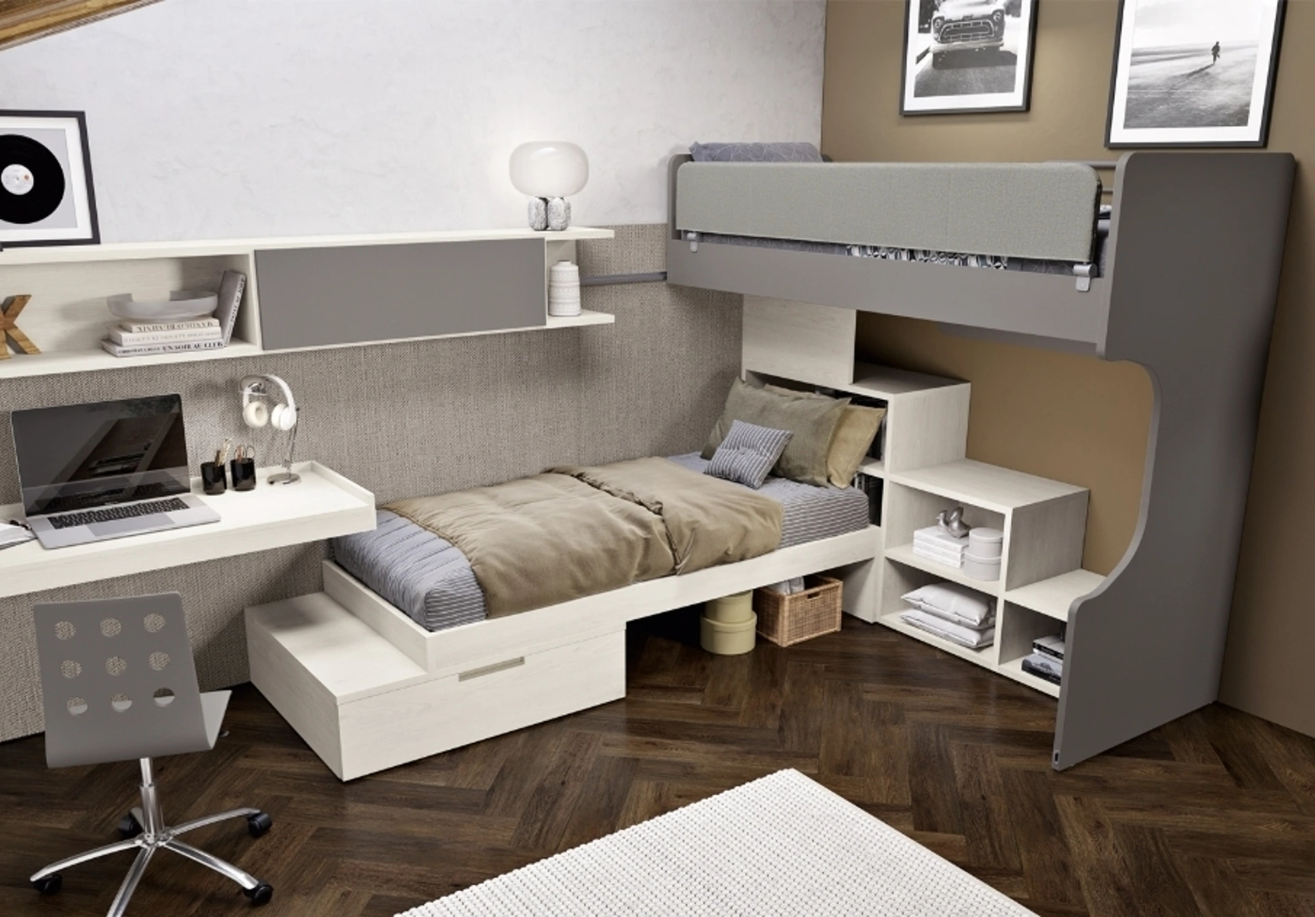 Cromie di tendenza e progetti articolati d'eccellenza contraddistinguono le più esclusive proposte del rinomato brand che proponiamo nel nostro punto vendita. La Cameretta 139 con letto scorrevole di Ferrimobili in melaminico è un mondo complesso da organizzare attentamente, coniugando diversi accessori su misura. Con una composizione arredativa Ferrimobili, potrai completare con praticità e design l'ambiente dove i tuoi figli passano gli anni fondamentali della vita. Vieni nel nostro punto vendita e potrai toccare con mano tutte le più esclusive composizioni d'arredo con letti scorrevoli moderne di Ferrimobili per i più piccoli.