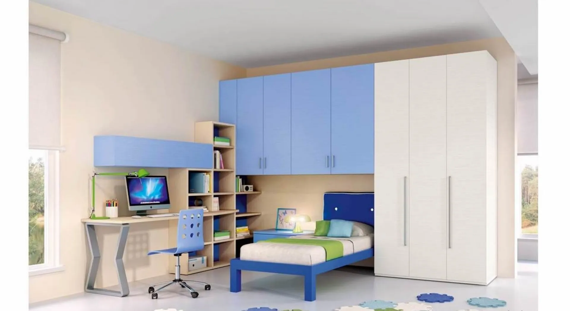 Ferrimobili soddisfa il gusto dei piccoli e le esigenze dei genitori con le sue Camerette moderne a ponte, ideali per necessità di ogni genere. Vieni nel nostro punto vendita e potrai vedere dal vivo tutte le più belle composizioni d'arredo a ponte moderne di Ferrimobili per i più piccoli. Con una composizione arredativa Ferrimobili, potrai completare con funzionalità e design il luogo dove i tuoi figli trascorrono gli anni importanti della vita. La Cameretta 619 a ponte di Ferrimobili in melaminico è un ambiente complesso da arredare con attenzione, unendo differenti elementi accessori su misura. Cromie di tendenza e progetti articolati d'eccellenza caratterizzano le più belle proposte del noto e conosciuto brand che presentiamo nel nostro punto vendita.
