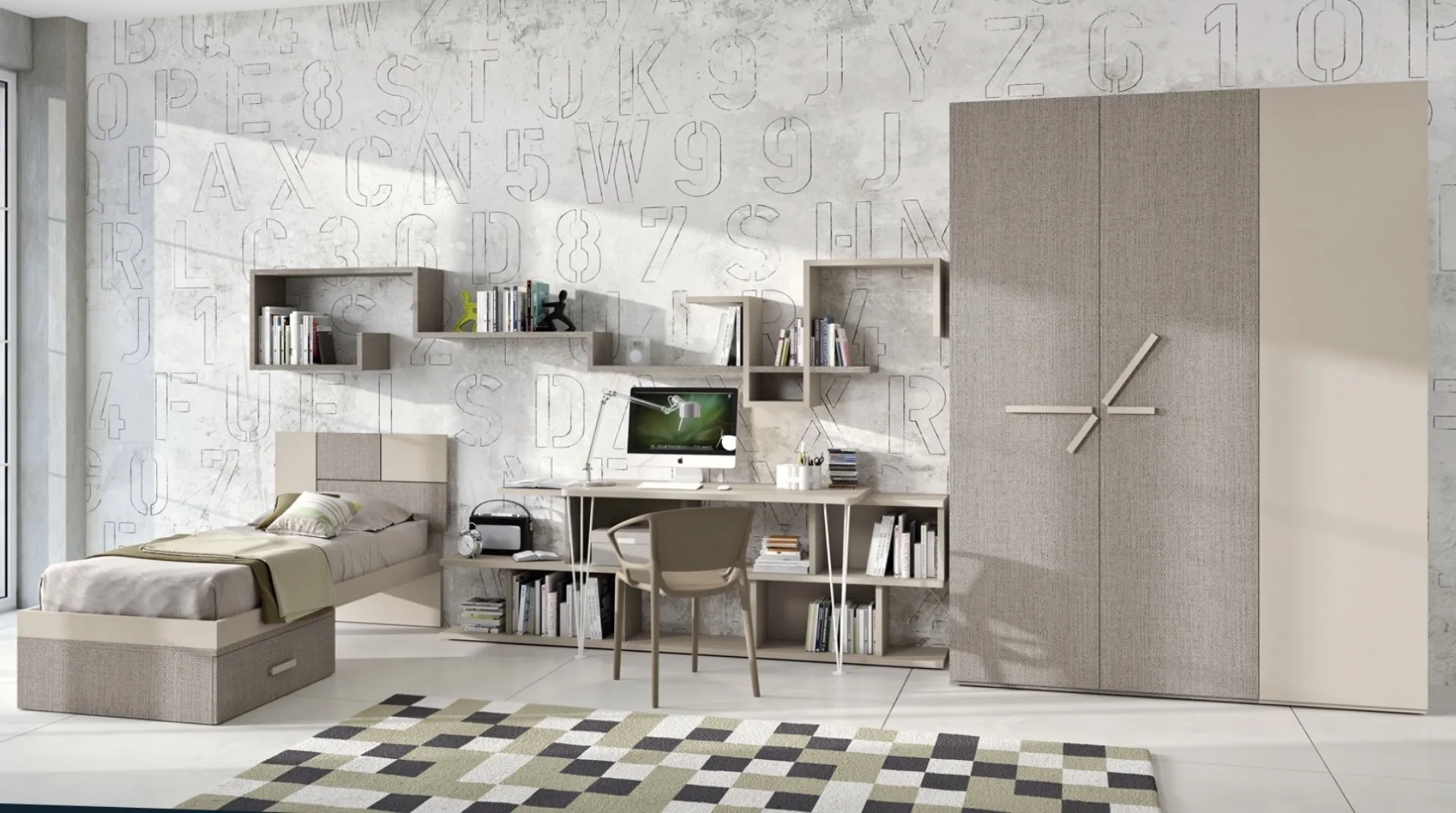 Ferrimobili soddisfa lo stile dei piccoli e le richieste degli adulti con le sue Camerette design componibili, ideali per esigenze di ogni tipo. Vieni nel nostro showroom e potrai vedere dal vivo tutte le più esclusive composizioni d'arredo componibili design di Ferrimobili per i più piccoli. Con una composizione arredativa Ferrimobili, potrai ultimare con funzionalità e design il luogo dove i tuoi bambini passano gli anni fondamentali della vita. Cromie di tendenza e soluzioni progettuali eccellenti caratterizzano le più esclusive proposte del noto e rinomato brand che presentiamo nel nostro showroom. La Cameretta 149 di Ferrimobili in melaminico è un universo complesso da organizzare con attenzione, mixando differenti accessori su misura.