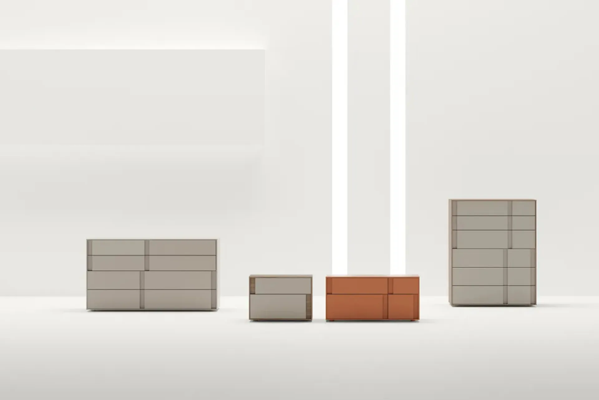 La zona del riposo contiene anche i Comodini: arredi contenitivi utilissimi che lasciano la possibilità di sistemare oggetti e potere ususfruire di piani di appoggio per vari utilizzi. Con i nostri gruppi notte moderni dell'azienda Adok, specialista dell’Arredamento Casa per la zona del riposo, potrai creare la zona notte che hai sempre sognato. Ottimizza i tuoi spazi scegliendo composizioni di mobili abbinati o crea voluti accostamenti di stile e cromie contando sul catalogo di mobili ed elementi accessori per la zona del riposo che proponiamo, come il modello in melaminico visibile in foto, anche realizzabili su misura. Gruppo Notte Loop di Adok: contattaci e ottieni informazioni sulle nostre composizioni e arreda la camera come l'avevi immaginata.