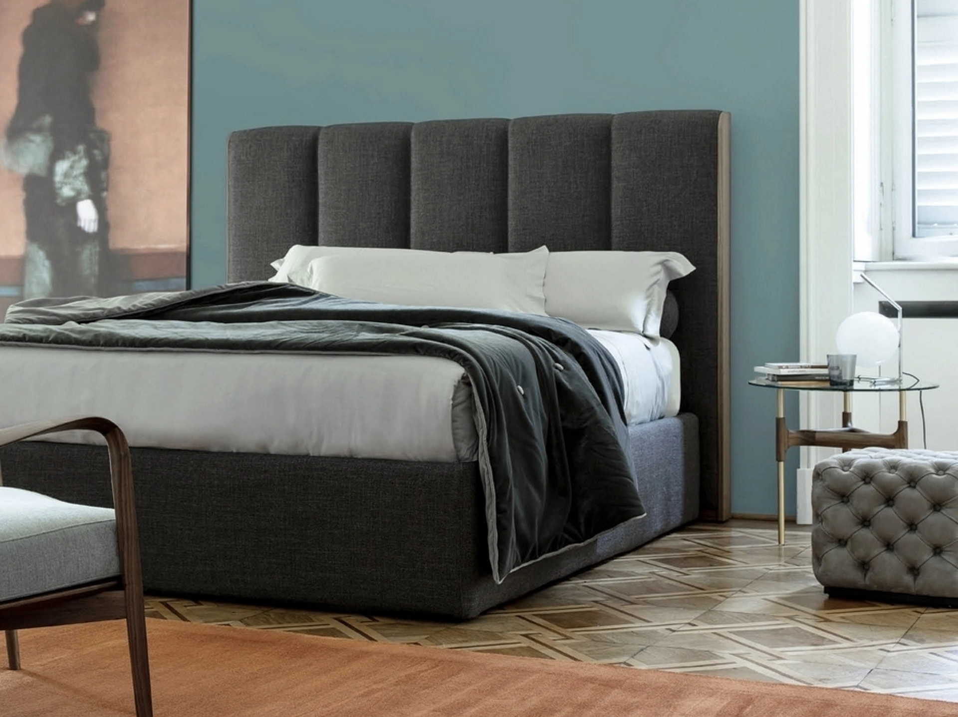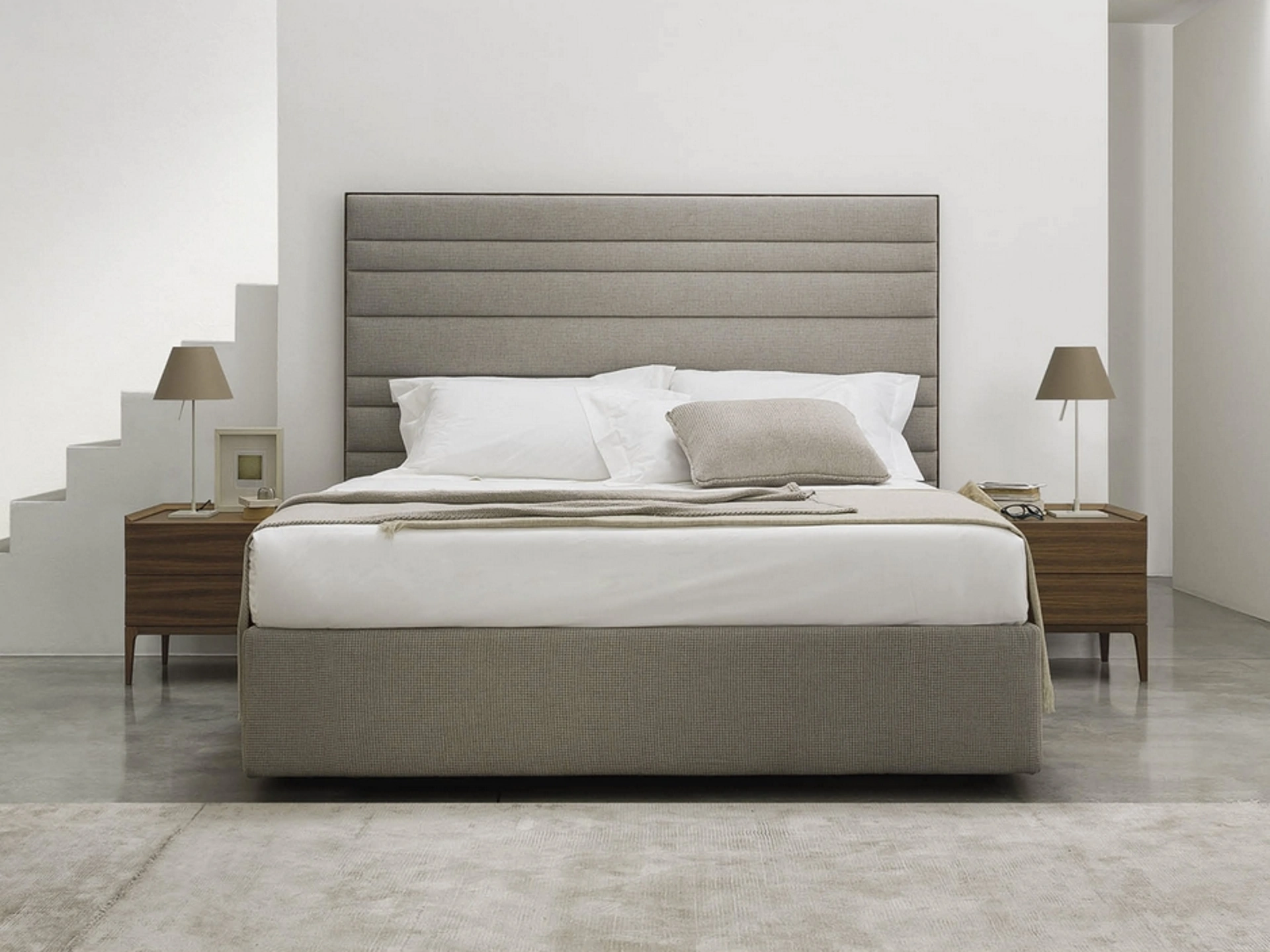 Se vuoi ammobiliare spazi moderni, ti aspettiamo per illustrarti la nostra design di Arredamento Casa per realizzare il tuo concept su misura. Scopri in negozio un ricco catalogo di Letti imbottiti, mobili e oggetti accessori per la zona del riposo dei migliori produttori. Se vuoi ricreare un'ambientazione intima e rilassante, il modello mostrato in foto fa al caso tuo: nella stanza del riposo dovrai ricreare un'ambientazione rilassante, per farti ritemprare le energie psichiche e fisiche ogni notte. Qualità delle finiture e grande comfort sono gli ingredienti che connotano tutti i prodotti della marca, tra cui anche il letto in tessuto in foto.