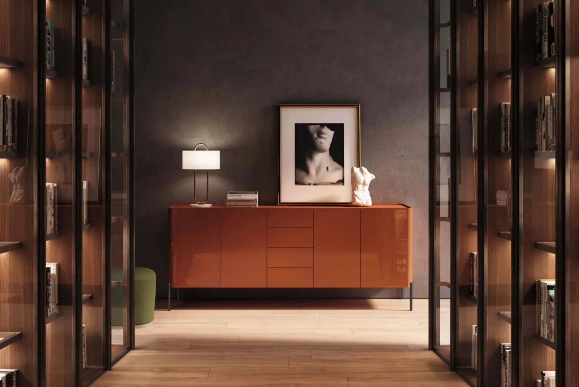 Un mobile soggiorno del genere valorizza in modo strategico i tuoi locali impreziosendoli: contattaci e scopri come dare vita a un'atmosfera dall'estetica raffinata con mobili ed elementi accessori per il soggiorno. Carattere accattivante e uno stile unico conquisteranno anche te: la Madia Dolly Rosso Corallo di Presotto è una tra le soluzioni più esclusive sul mercato. Le Madie, come il modello in laccato lucido mostrato in foto, sono capaci di personalizzare i locali interni grazie alla qualità di rivestimenti e finiture. Il brand produttore propone Arredamento Casa di grande pregio: ti accoglieremo nel nostro punto vendita per farti vedere dal vivo le composizioni arredative più esclusive. Scopri la nostra collezione di Madie in laccato lucido del rinomato brand Presotto, come il modello in foto, e potrai ricreare un living pratico e operativo.