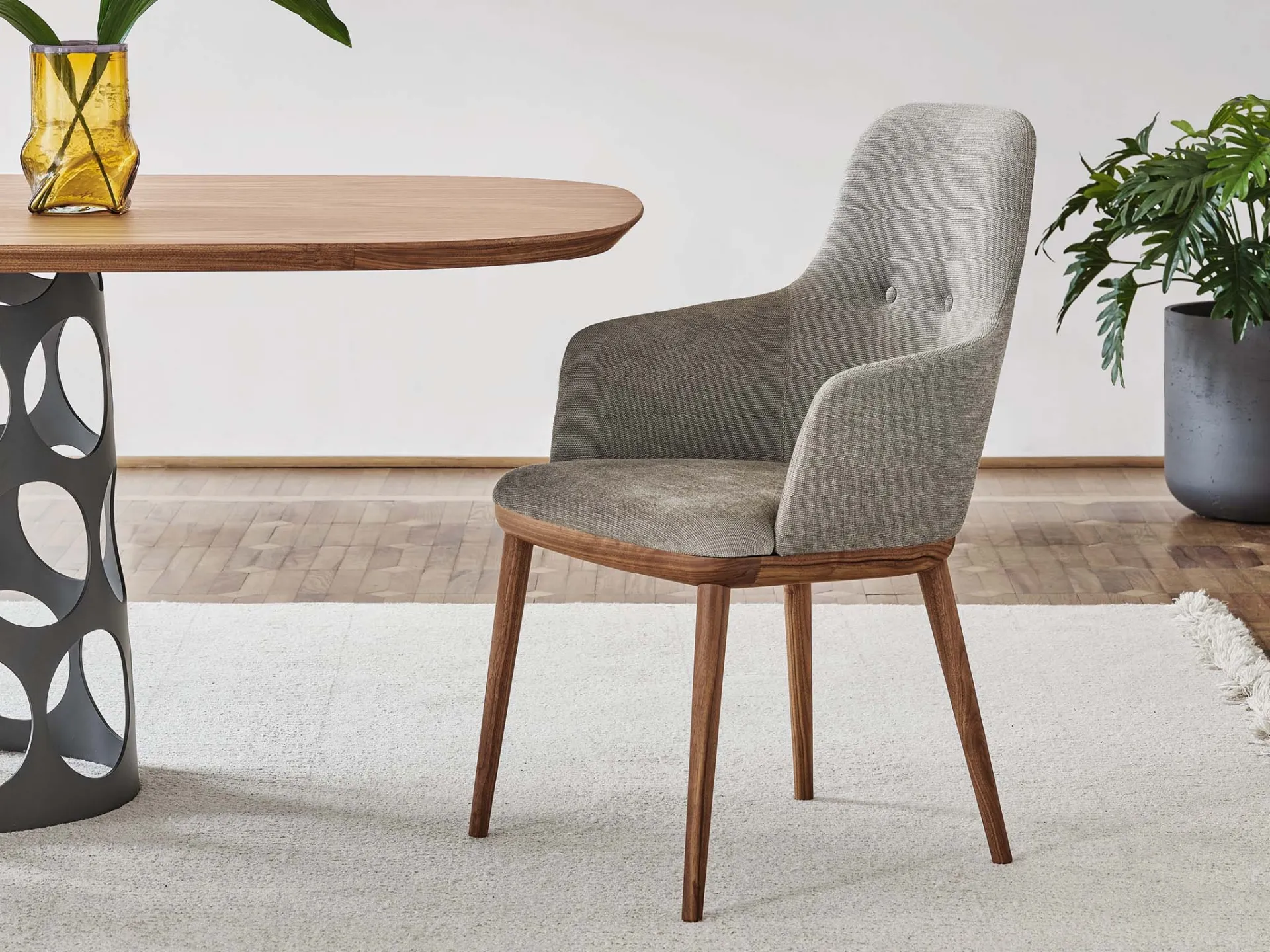 Nel nostro showroom potrai vedere dal vivo le più belle proposte sul mercato, tra cui anche quelle da pranzo moderne firmate dal rinomato brand Porada. Sedia in tessuto Connie di Porada in tessuto: saprà arredare ottimamente il dining o il living della tua casa, mixando doti di funzionalità e stile. Oltre ad essere veramente comoda e ergonomica, questa sedia in tessuto ti garantirà una serena quotidianità nei locali dove si sta in compagnia con familiari e amici. Ogni soluzione Porada assicura una buona resa estetica indipendentemente dal locale di destinazione, in quanto organizza gli spazi valorizzandoli appieno. Le sedute costituiscono tra i mobili e oggetti accessori irrinunciabili in ogni casa, per cui disponiamo in negozio di una vasta gamma di soluzioni da scegliere basandoti sui tuoi gusti.